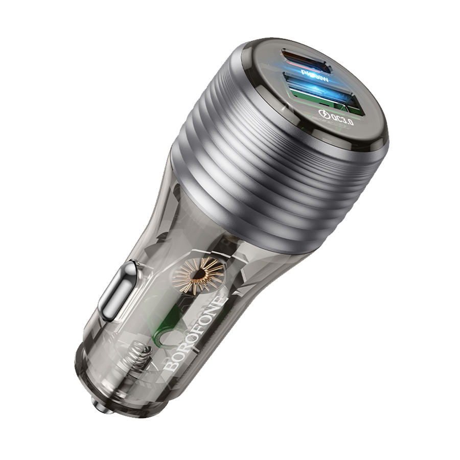 Auto Punjač sa kablom 1m Type-C to Type-C BOROFONE BZ30 Absolute PD30W+QC3.0 car charger set USB + Type-C, transparent black