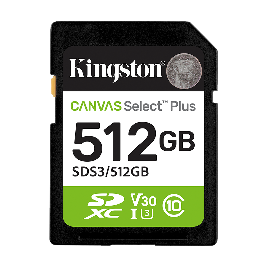 Micro SD card Kingston 512 GB SDCS3/512GB Class10 Canvas Select Plus SD adapter;100MBs Read,Class 10 UHS-I