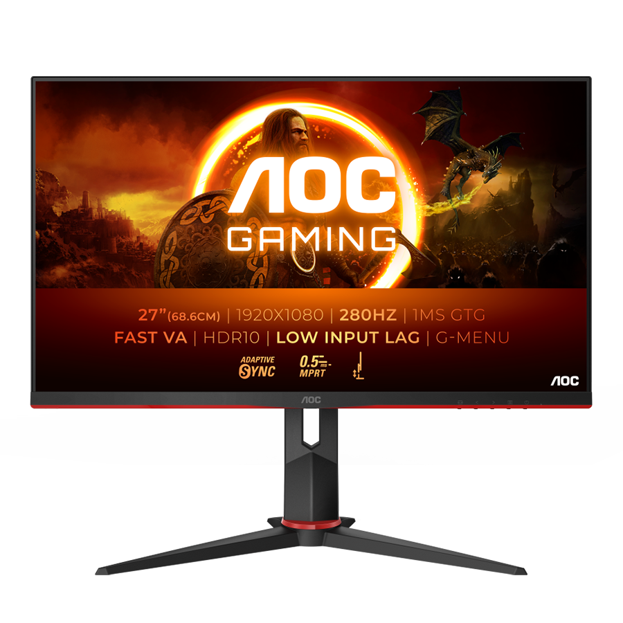 MONITOR AOC 27G2ZN3 Gaming, 27", FHD 1920x1080, Fast VA, 240Hz (280Hz OC), 1ms, Adaptive Sync, HDR 10, 4000:1, 300 cd/m2, 2xHDMI, 1xDP, Full Ergonomic