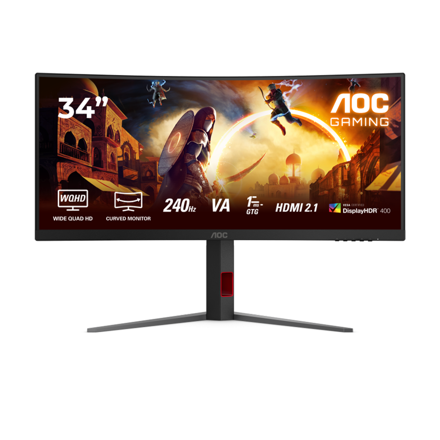 MONITOR AOC CU34G4Z 34" Curved Fast VA, WQHD 3440x1440, 240Hz, 1500R, 1ms, DisplayHDR 400, Adaptive Sync, 2x HDMI 2.1, 1x DP 1.4, USB hub, Ergonomic