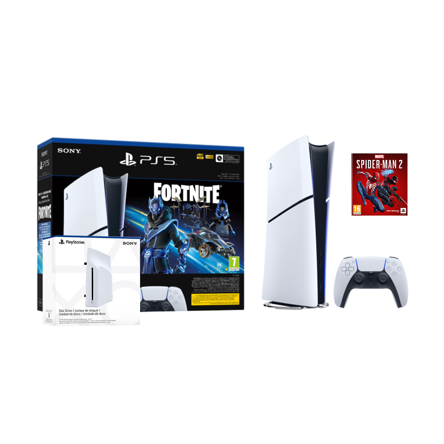PlayStation 5 Slim Digital Edition D chassis+Playstation Disc drive+ +Fortnite VCH+Marvel"s Spider-Man 2 St. E.VCH 1000045170MSM2V2