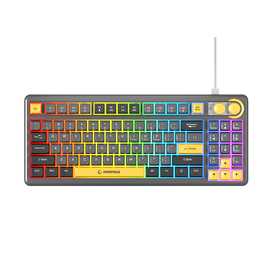 Tastatura gaming RAMPAGE Cyclone Gray/Black/Yellow USB RGB illuminated Us Layout English Compact Membrane, 41693