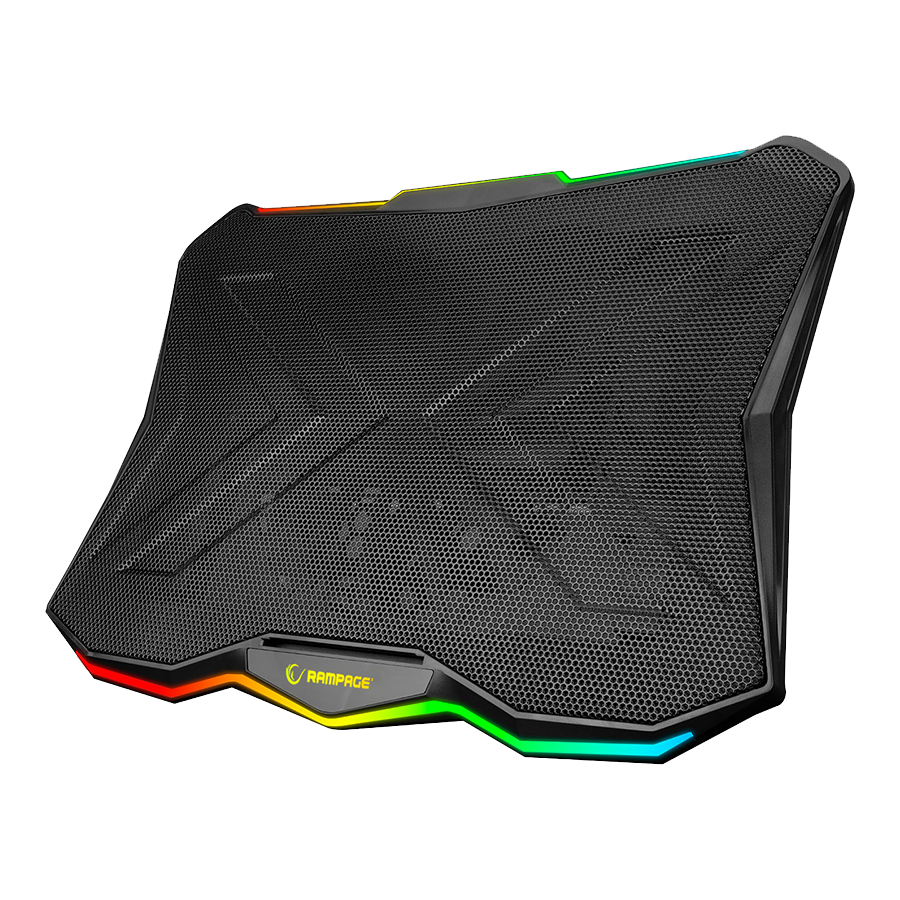 Postolje za notebook gaming Rampage AD-RC8 SHOWY Black 180mm Fan 15-17" RGB Light Notebook Cooling Stand, 33450